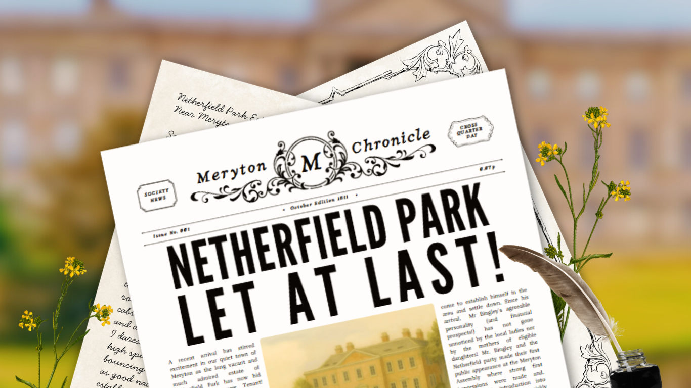 Step beyond the pages of Pride and Prejudice and into a charming world of bonnets and beaus with the Meryton Chronicle, a Regency inspired newspaper experience delivered straight to your door!